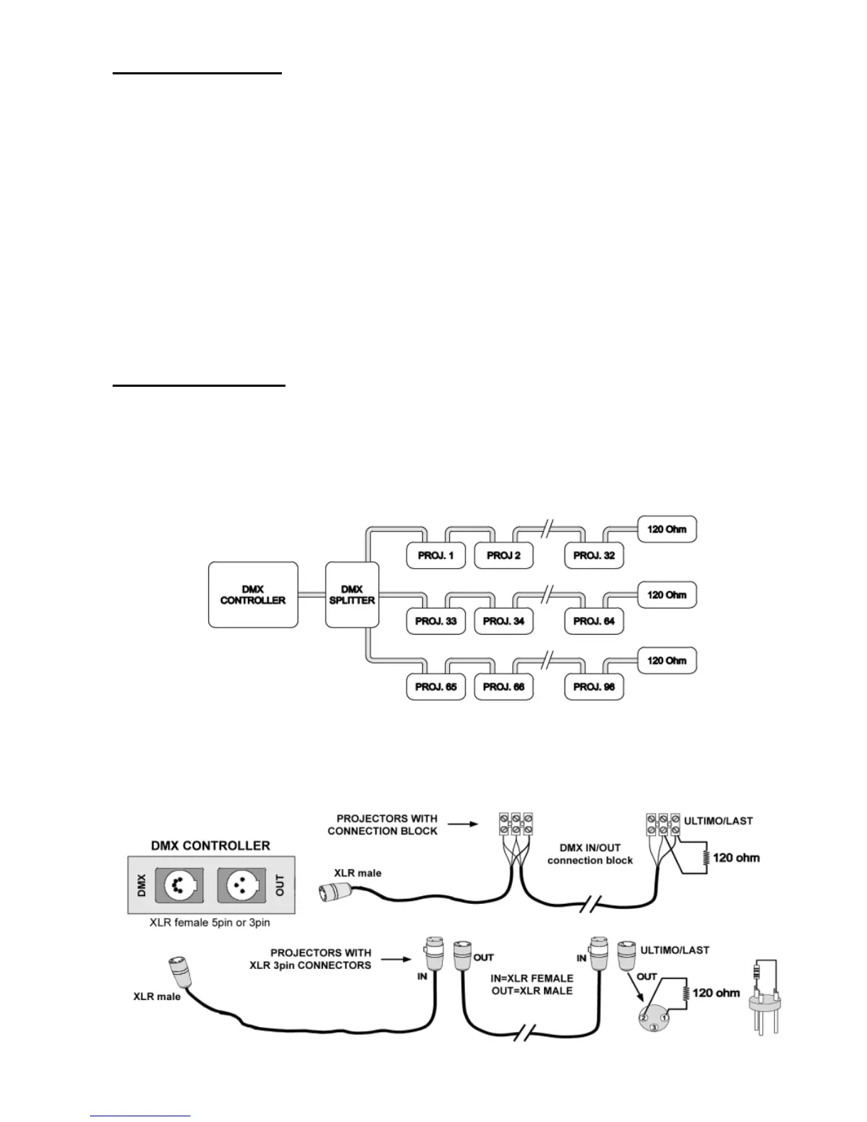 Standard DMX controllers have only one signal out-put. If more than 32 projectors are used it is necessary to have a signal