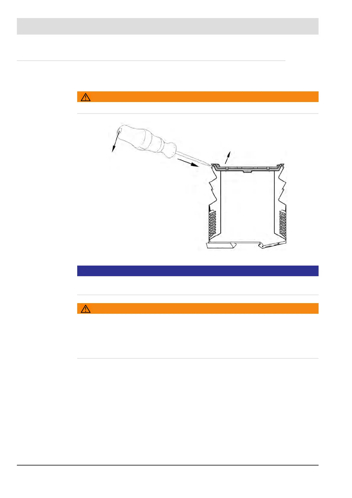 To open the housing, first remove all connectors. Then using a flat, pointed object (e.g.