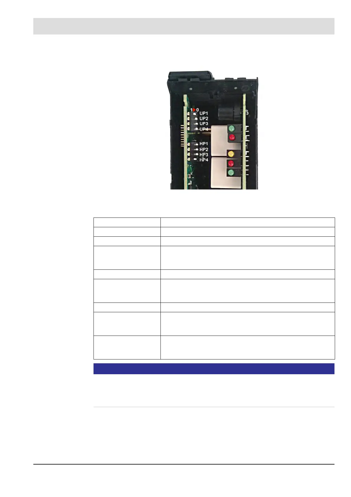 To activate the configuration switches UP1 to HP3, switch HP4 must be set to 1.