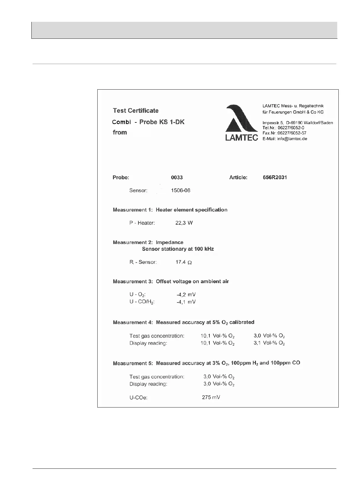 A test report is supplied with each probe. It is therefore possible to compare the