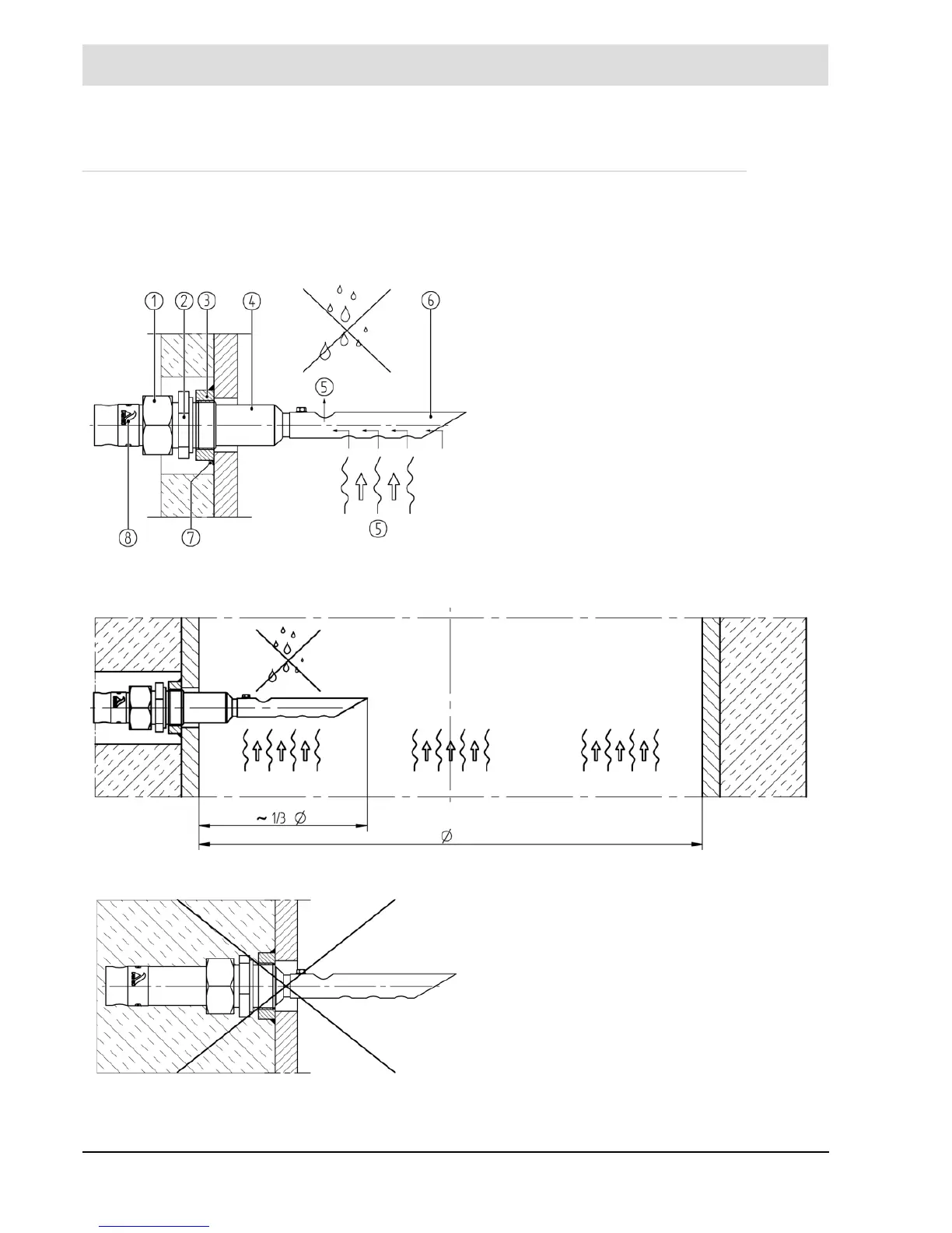 Fig. 6-9 Correct probe installation with GED in flue gas duct