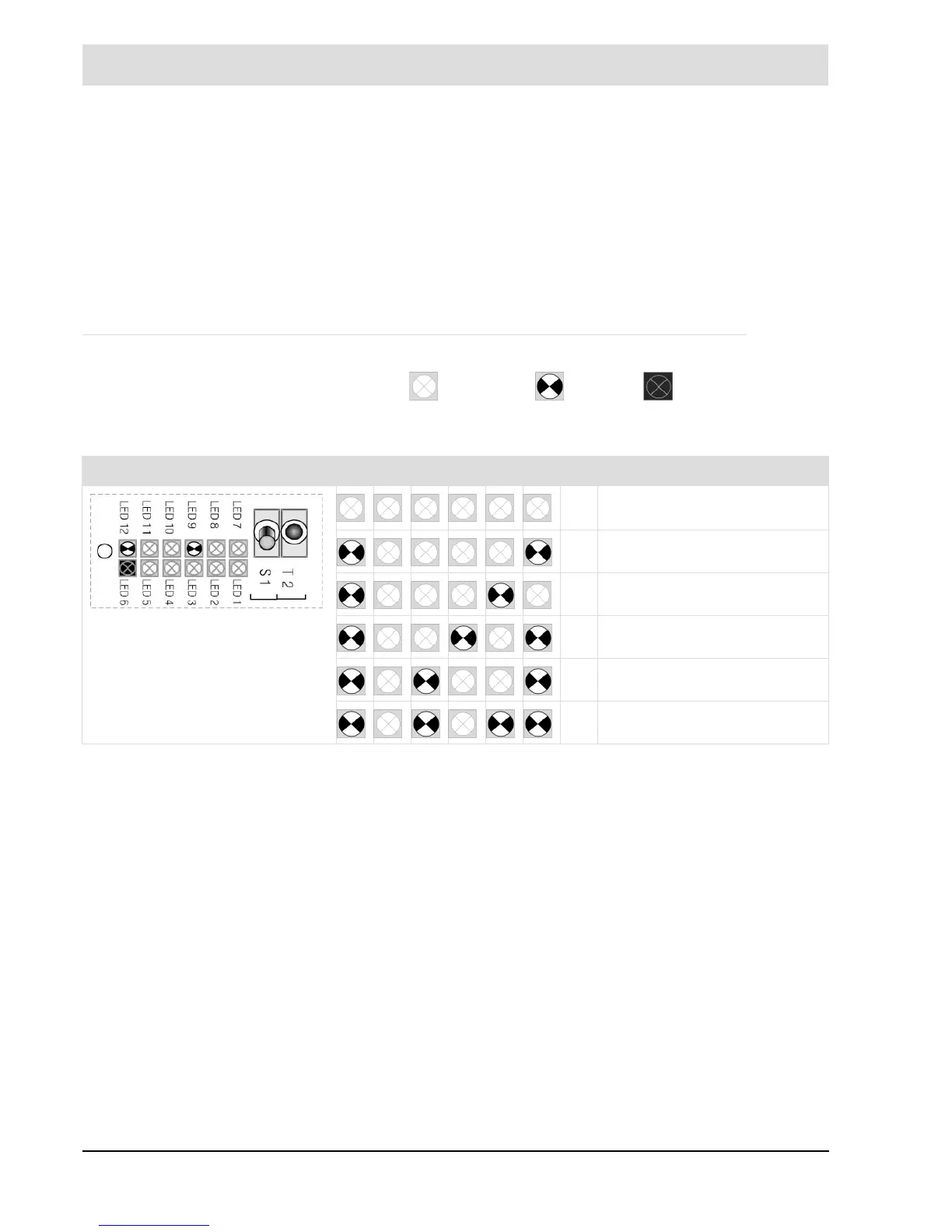 • by LED row, LED 7 to 12, on LT2's processor board