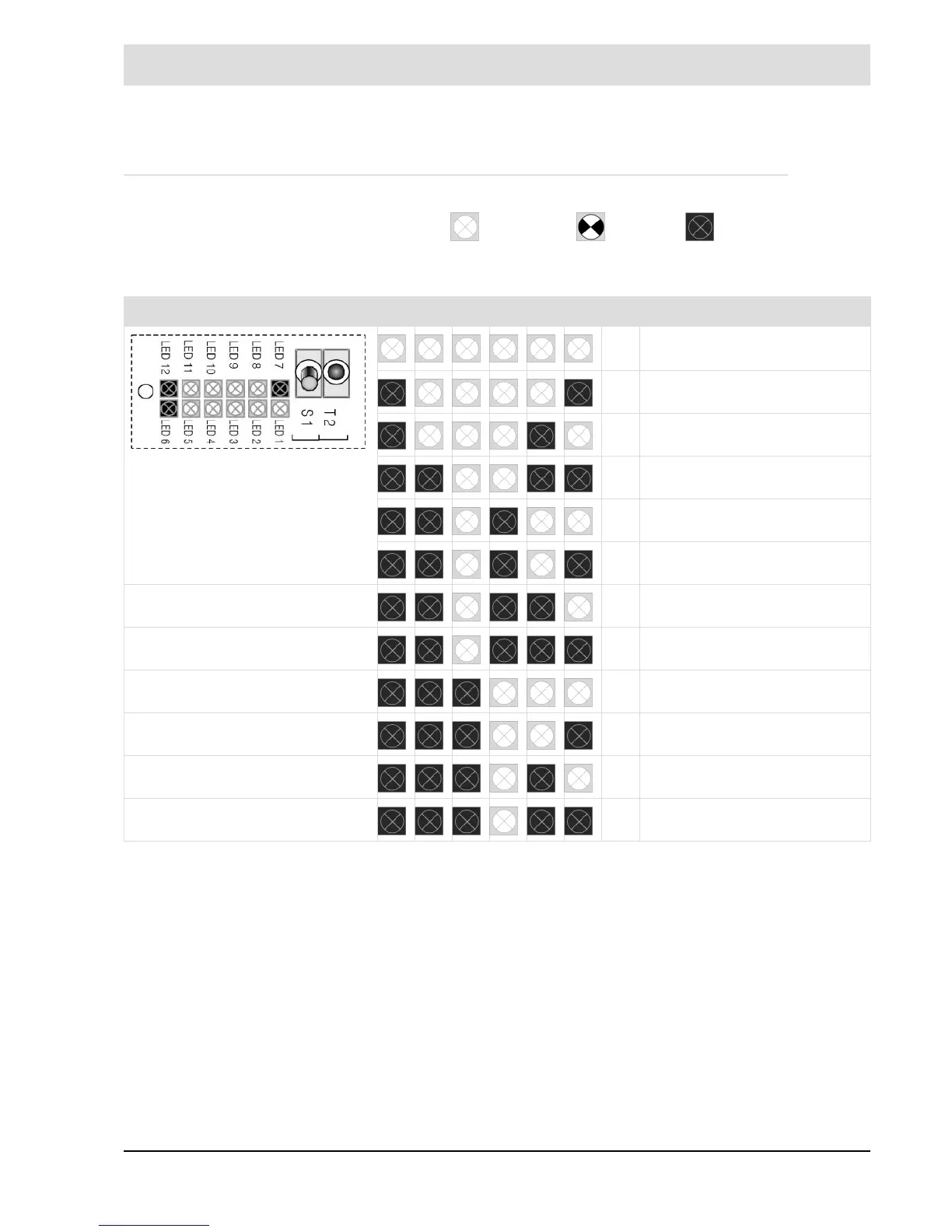 Message by LED row, LED 7 to 12, LED 12 lights up.