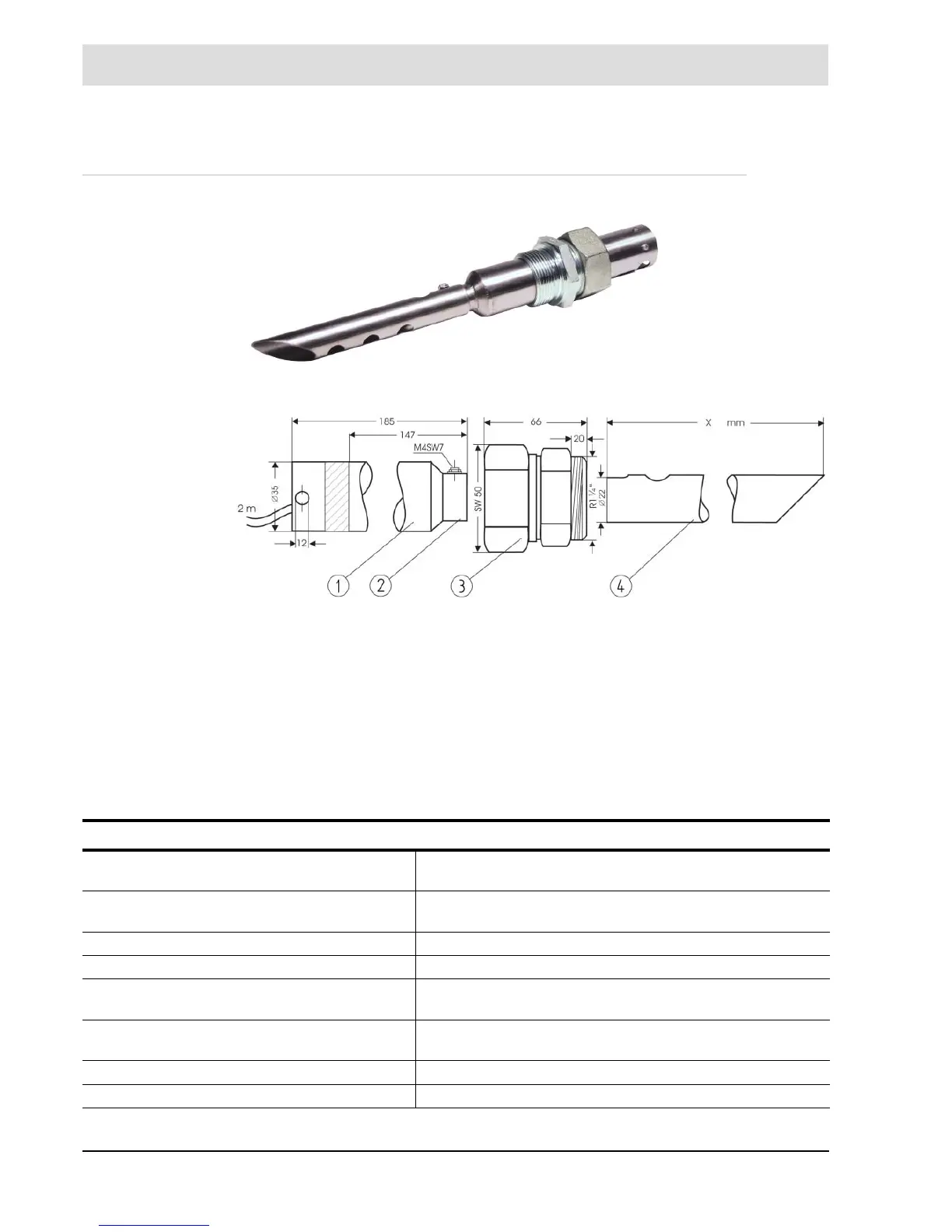 4 Gas extraction device length X = 150 mm/5.91" in
