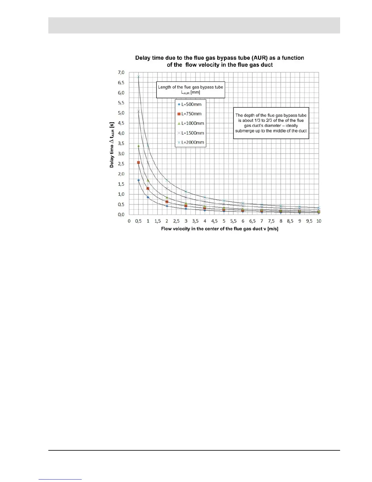 Fig. 11-4 Flue gas bypass tube delay time as function of the velocity in the exhaust air channel depending