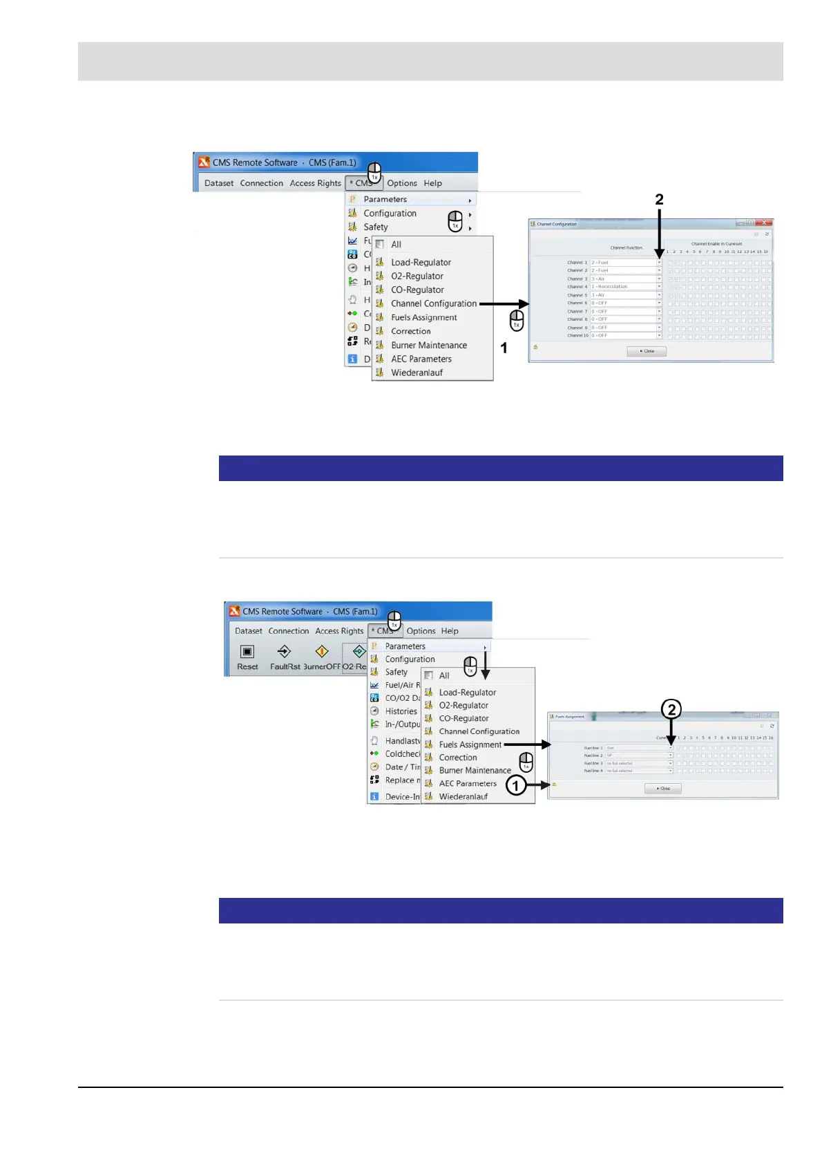 1 Enter the password (padlock symbol) 2 Selection by pull down menus.