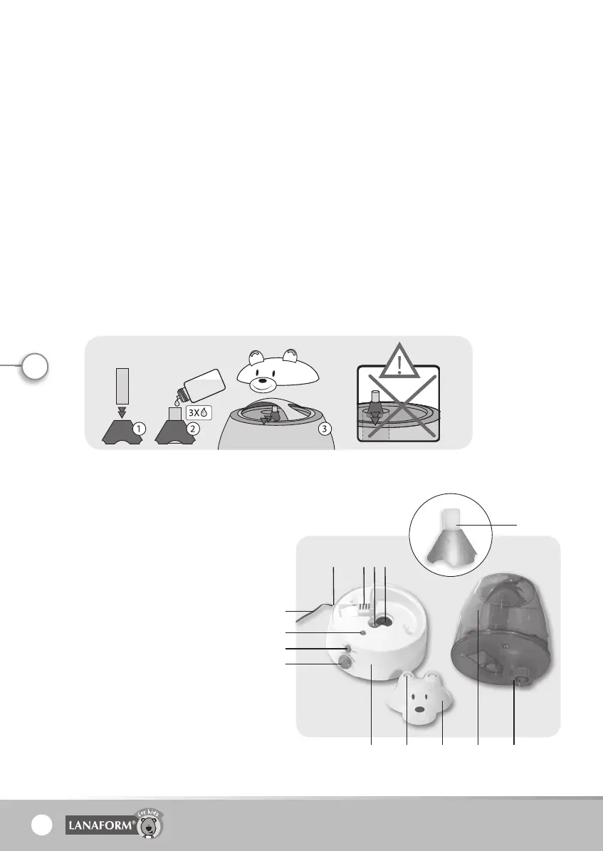 • Zvlhčovač vzduchu je vybaven nádobkou na esenciální oleje (není součástí dodávky). Než esenciální vonné oleje