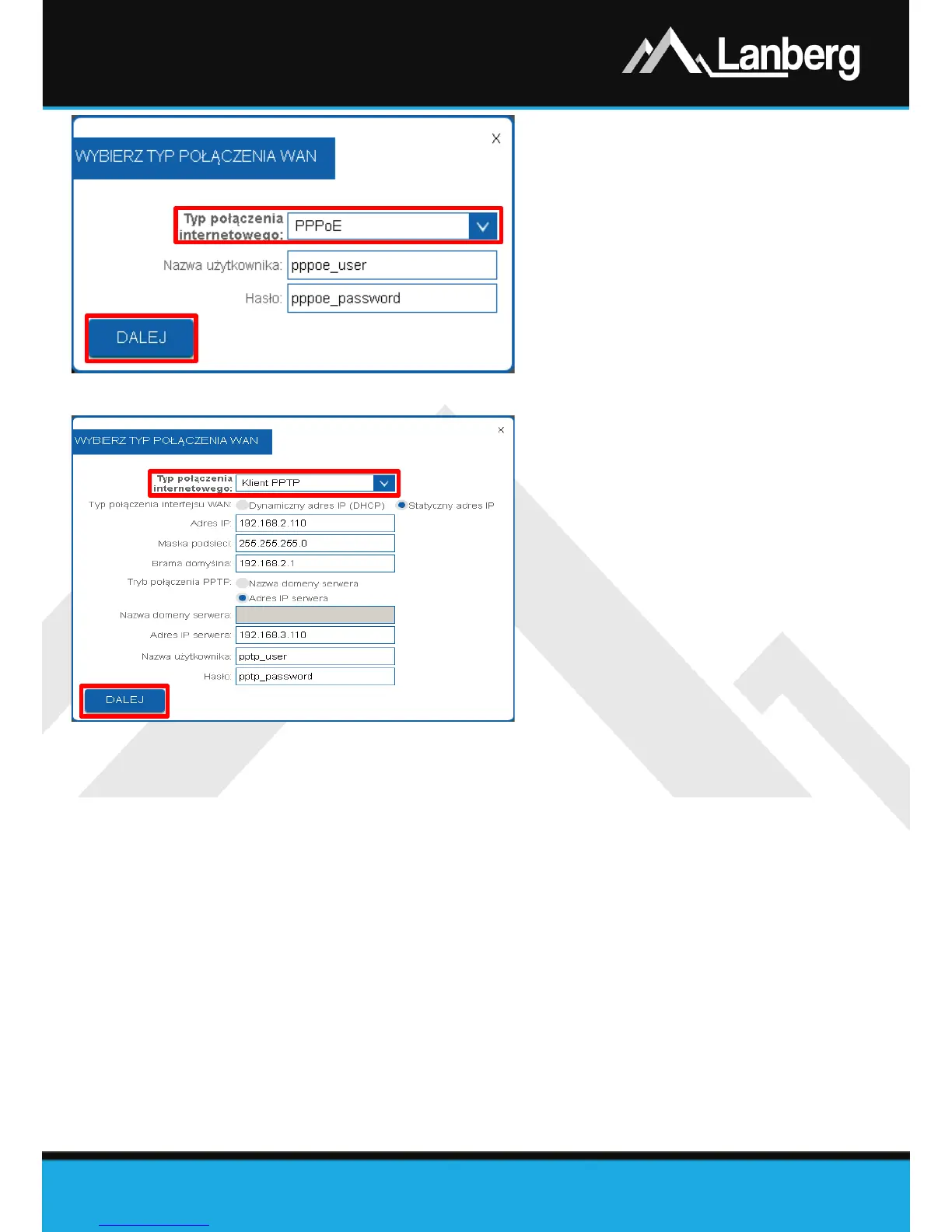 VPN po protokole PPTP z routerem Lanberga posiada zmienny lub stały adres IP, ustaw