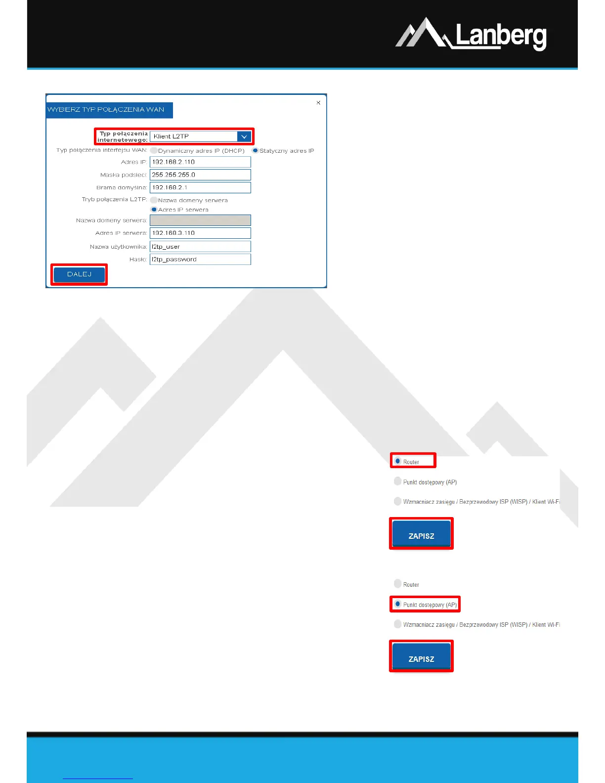 3.5.6) Konfiguracja urządzenia w trybie routera