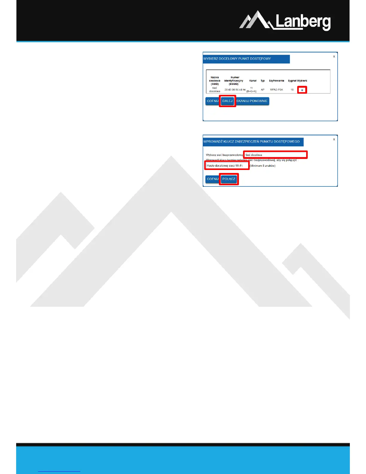 zabezpieczona, w 2 polu wpisz aktualne hasło do docelowej sieci Wi-Fi z którą chcesz połączyć