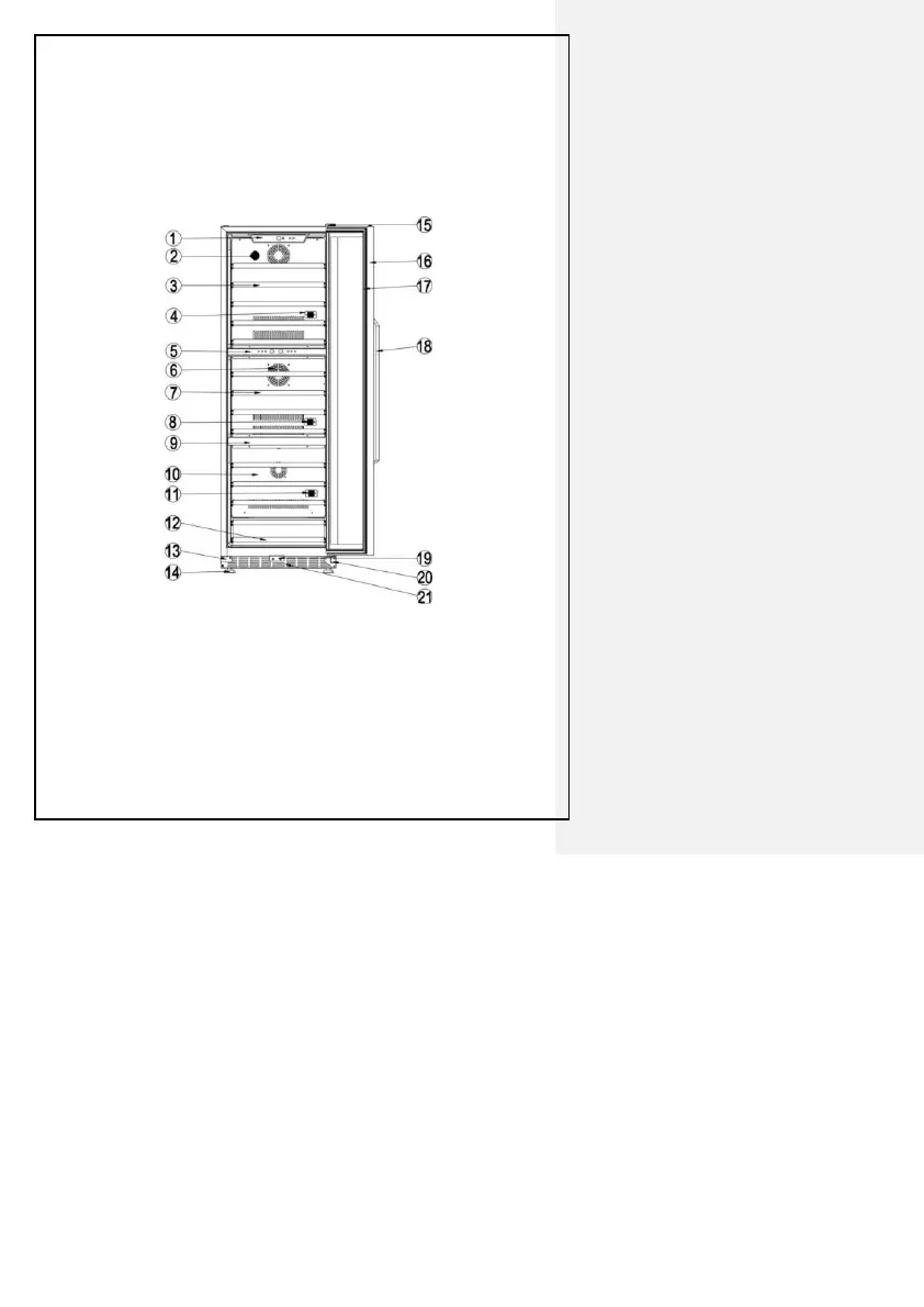 (1) Upper Control Panel (2) Carbon Filter (3) Full Wooden Shelf (4) Upper