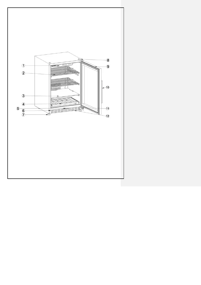 (1) Control Panel (2) Wire Shelf (3) Glass Shelf (4) Small Wooden Shelf