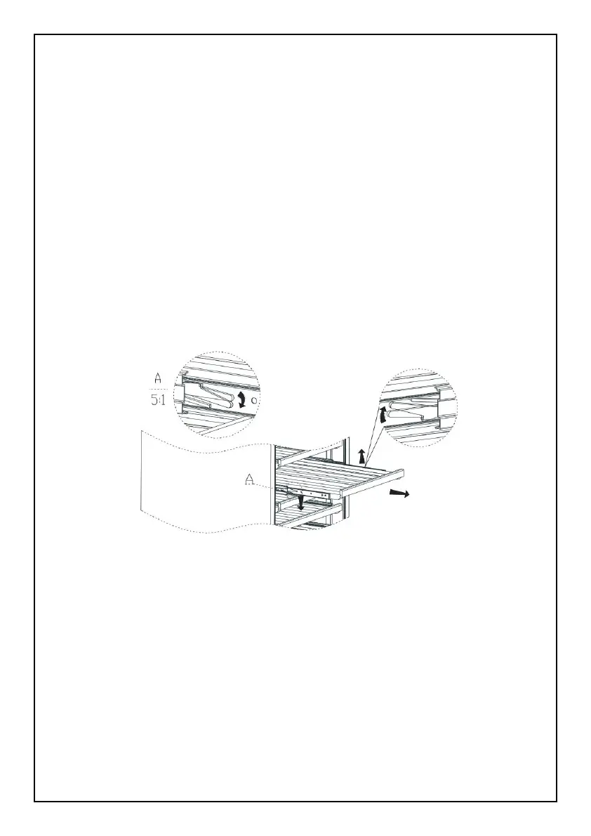 Do as the following shows if needing to pull out or change the shelves;