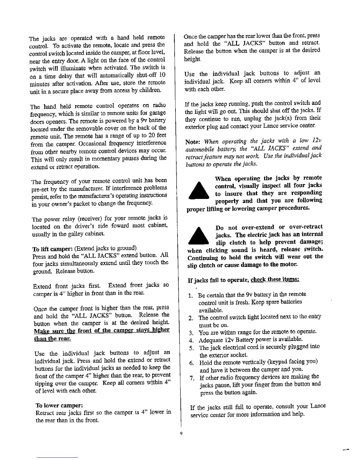 Lance 2001 model - FRESH WATER SYSTEM; Water Pump; Water Tank Fill