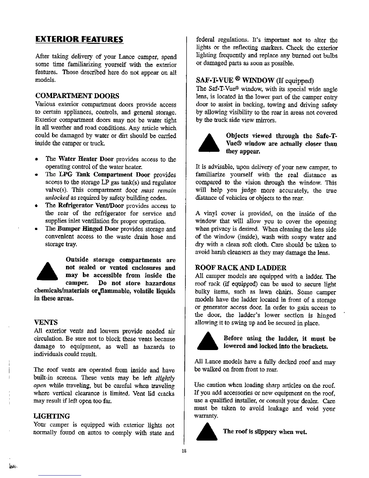 Lance 2001 model - INTERIOR MAINTENANCE; Interior Odor; Upholstery and Drapes; Wall and Ceiling Panels