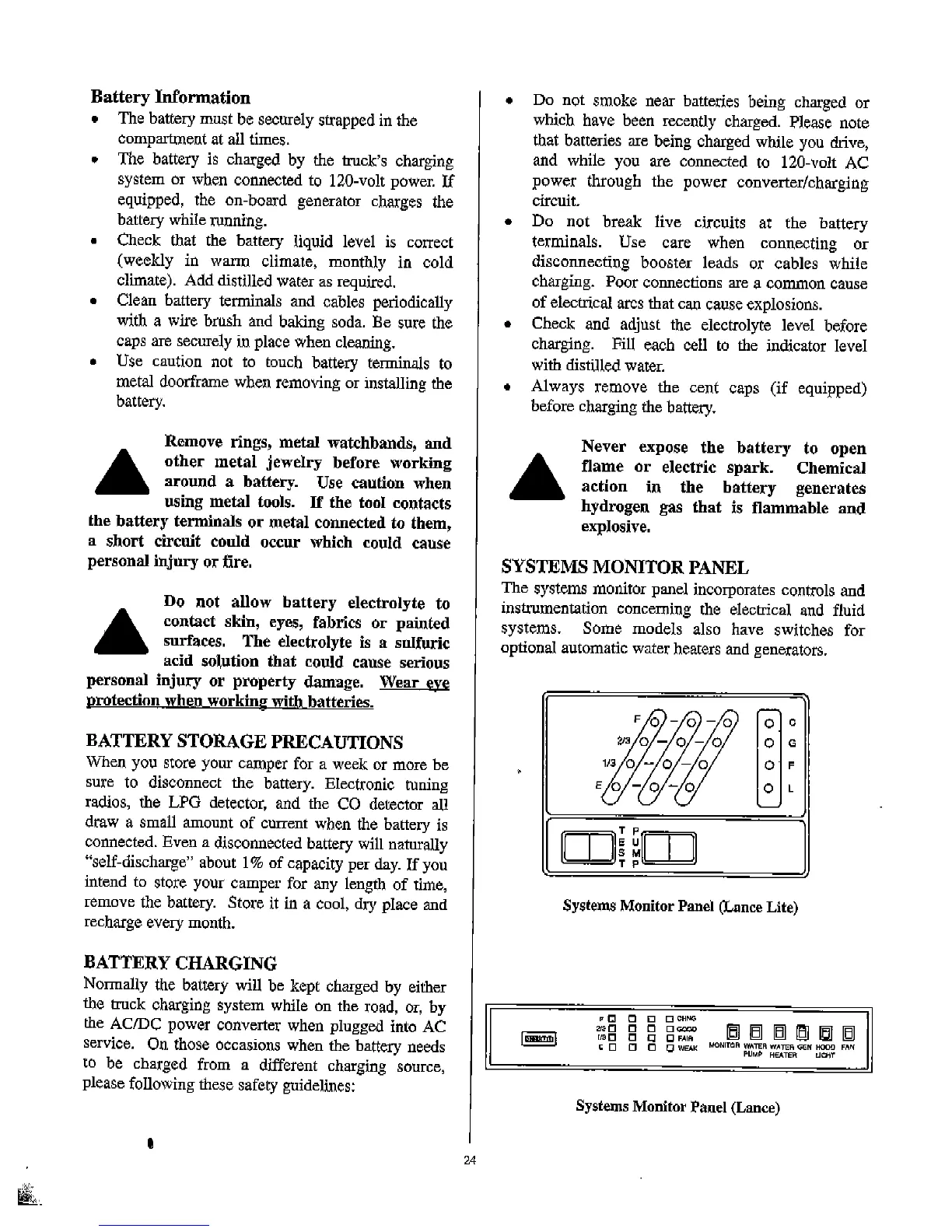 Lance 2001 model - REACTIVATING CAMPER AFTER STORAGE; Outside Area; 12-Volt System; Fresh Water System