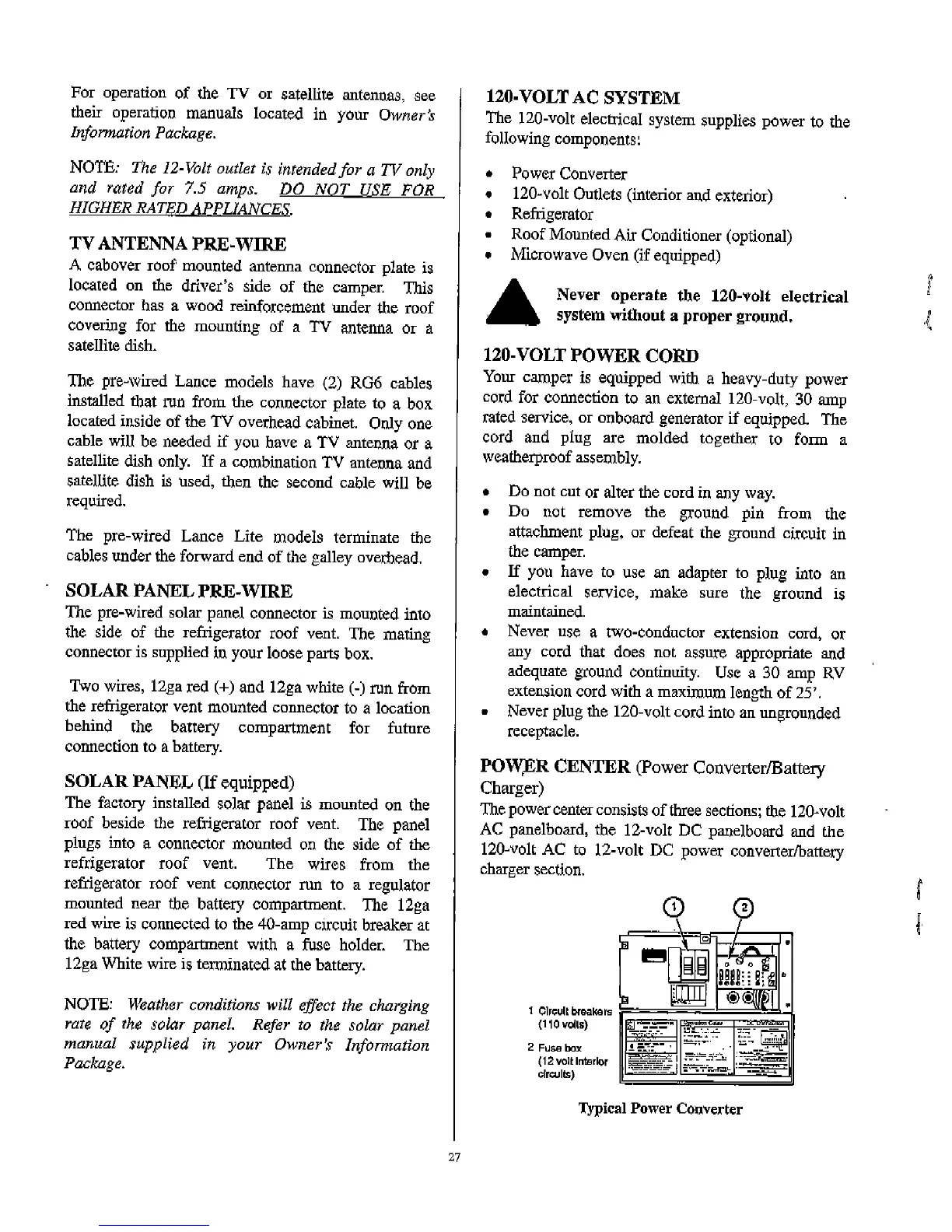 Lance 2001 model - TV Antenna Pre-Wire; 120-Volt AC System; 120-Volt Power Cord; Solar Panel Pre-Wire