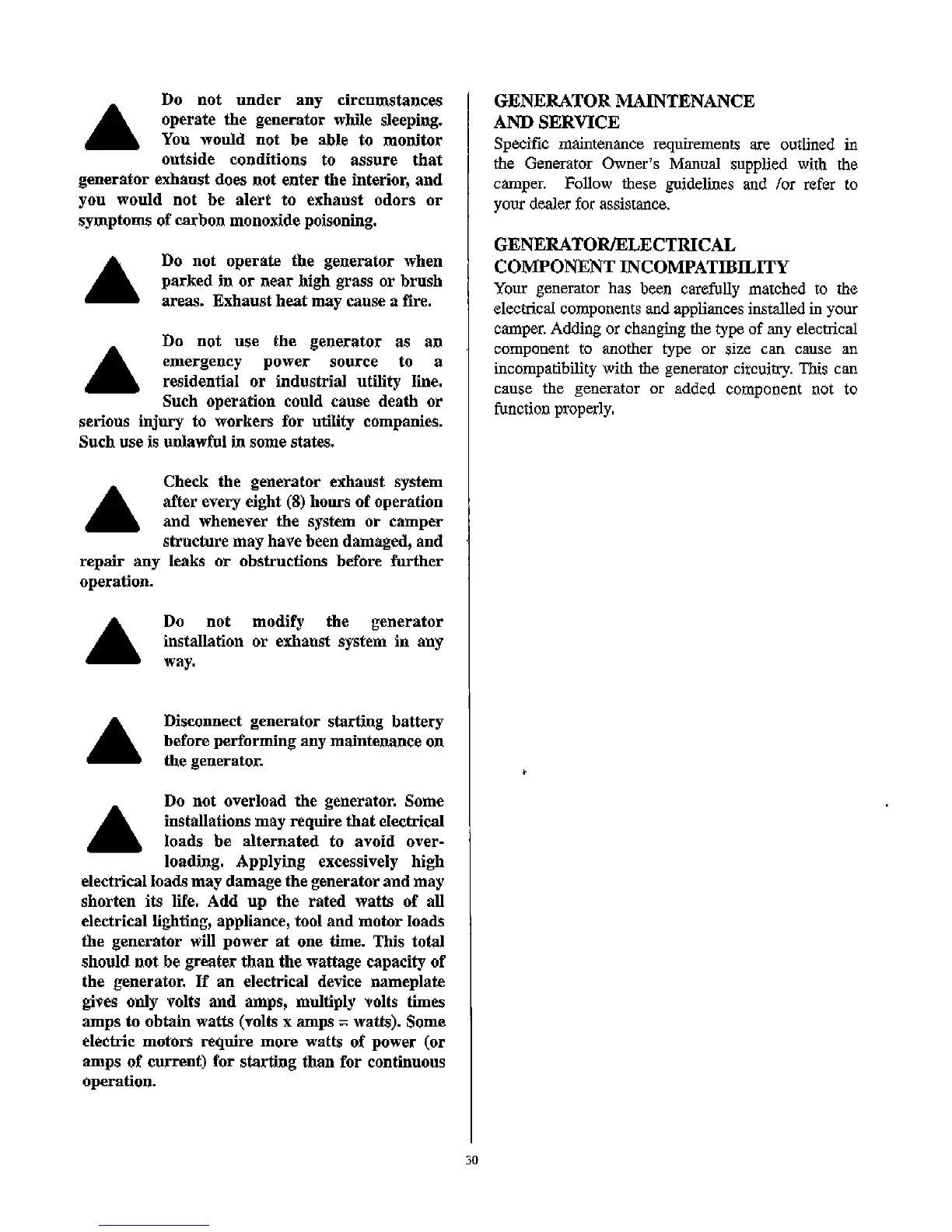 Lance 2001 model - Generator Maintenance and Service; Generator;Electrical Component Incompatibility