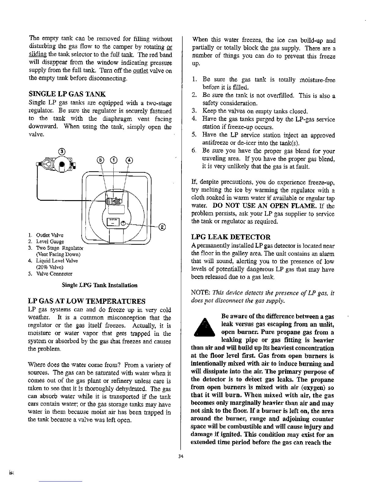 Lance 2001 model - Single LP Gas Tank; LP Gas at Low Temperatures; Single LPG Tank Installation