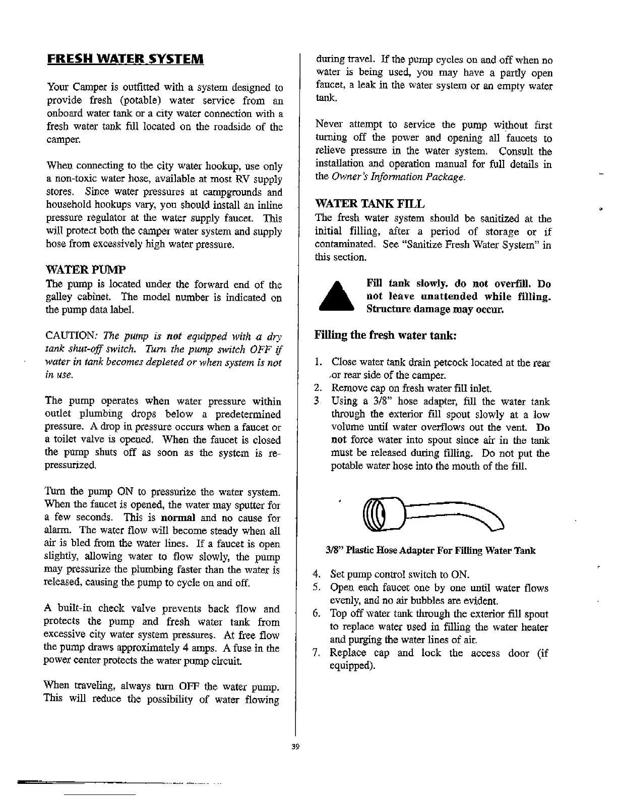 Lance 2001 model - Fresh Water System; Water Pump; Water Tank Fill