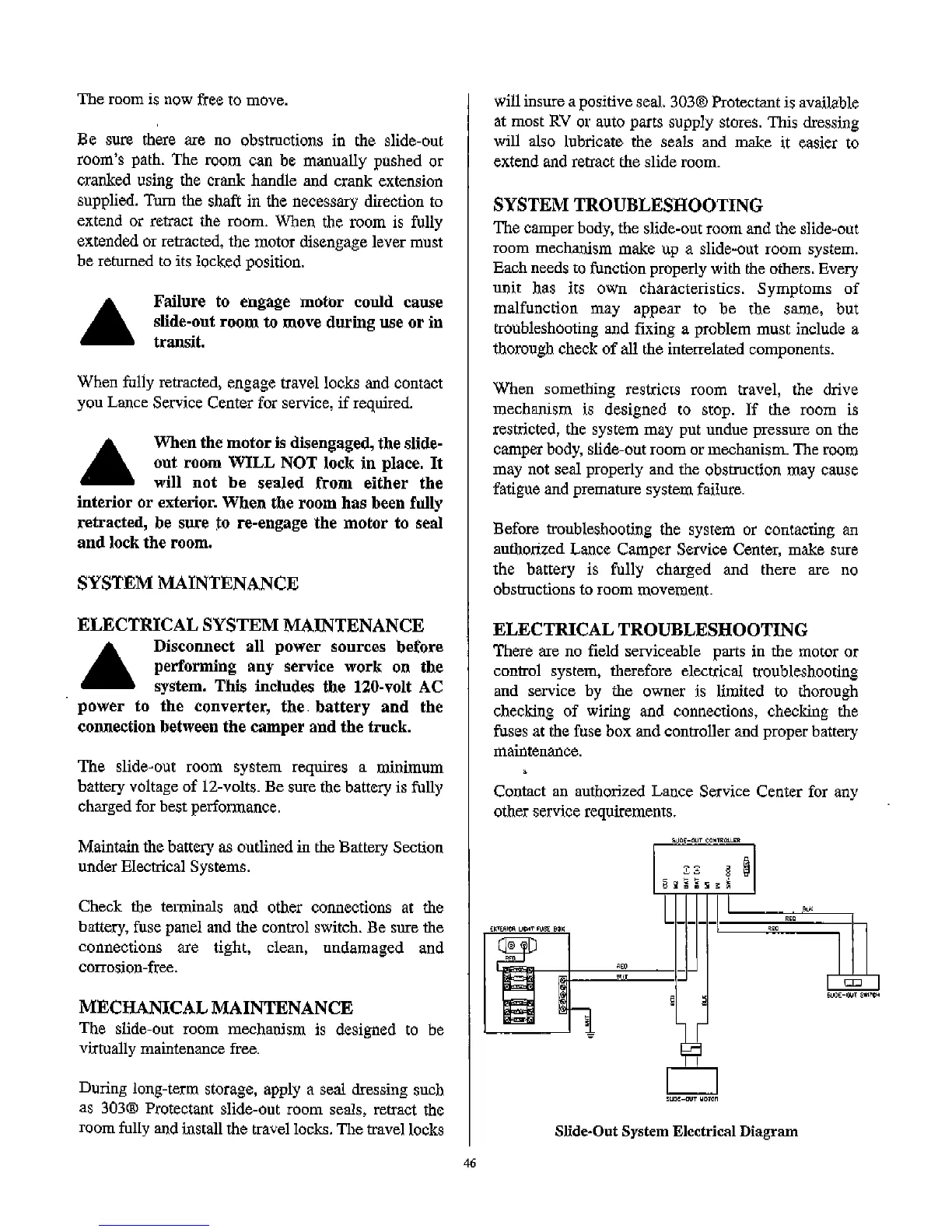 Lance 2001 model - System Maintenance; Electrical System Maintenance; Mechanical Maintenance; Electrical Troubleshooting