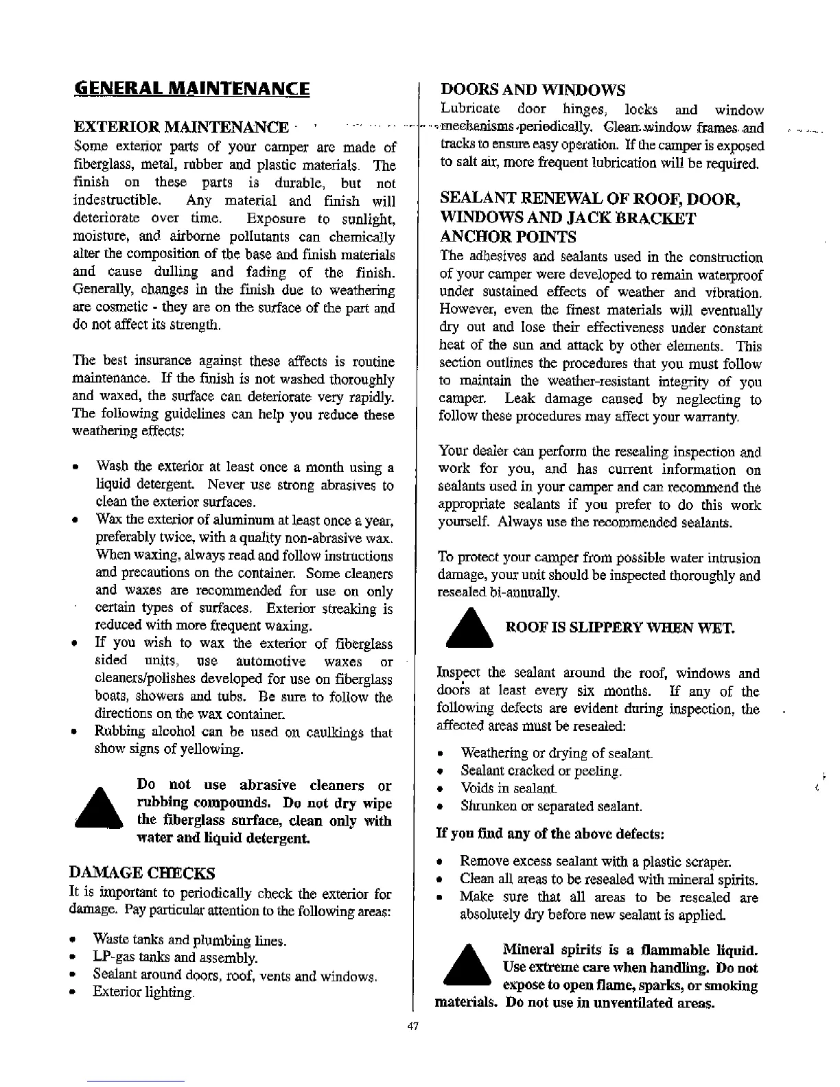 Lance 2001 model - General Maintenance; Exterior Maintenance; Doors and Windows; Damage Checks