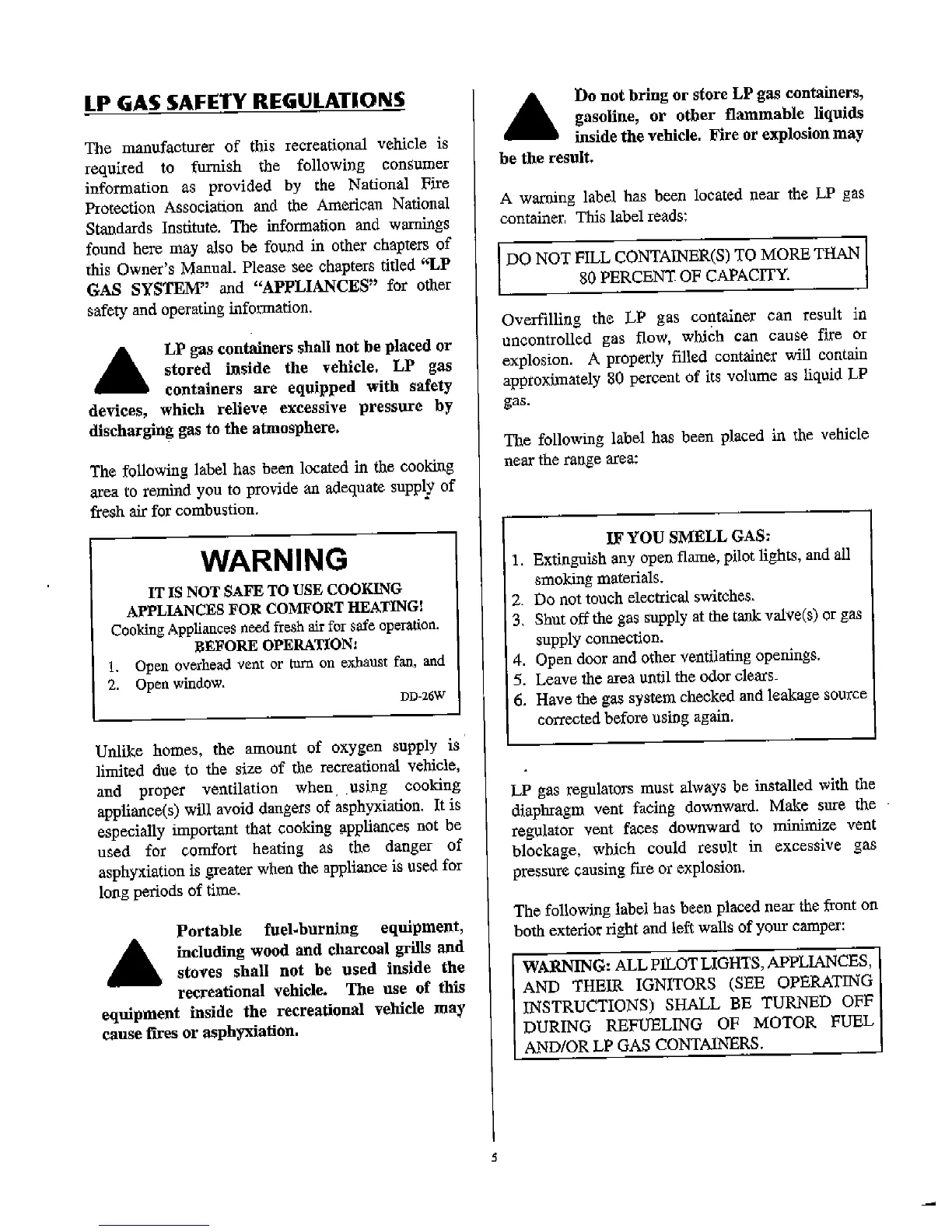 Lance 2001 model - LP Gas Safety Regulations; If You Smell Gas