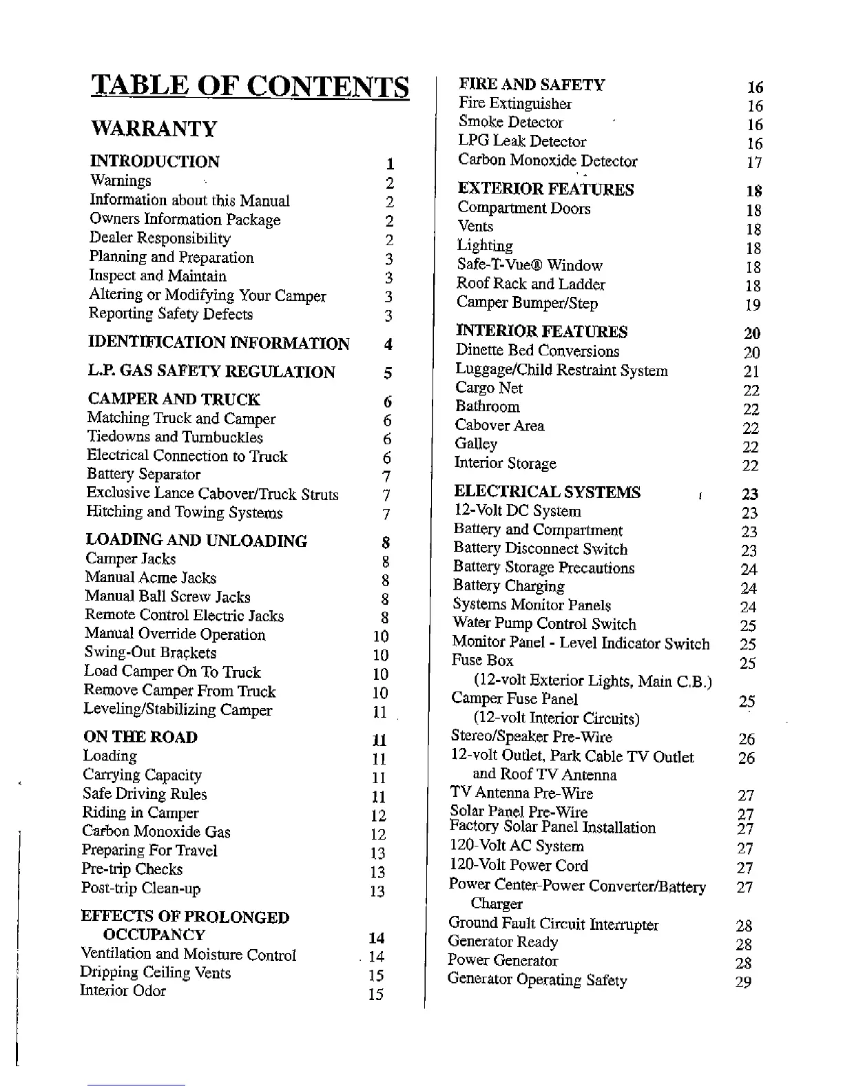 Lance 2002 - WARRANTY