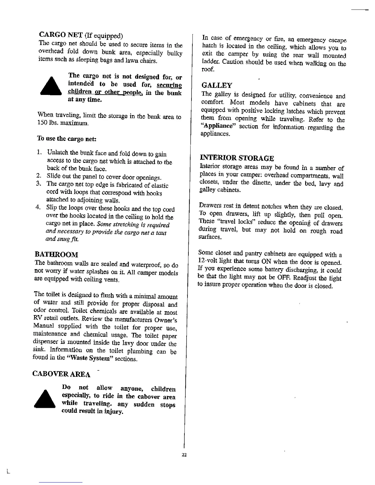 Lance 2002 - Cargo Net; Galley; Bathroom; Cabover Area