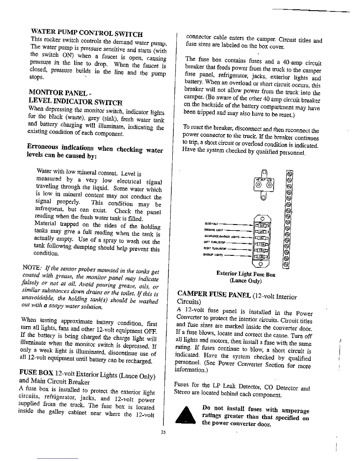 Lance 2002 - GENERATOR OPERATING SAFETY PRECAUTIONS AND WARNINGS