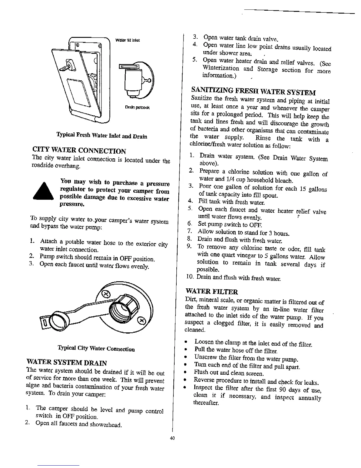 Lance 2002 - City Water Connection; Water System Drain; Sanitizing Fresh Water System; Water Filter
