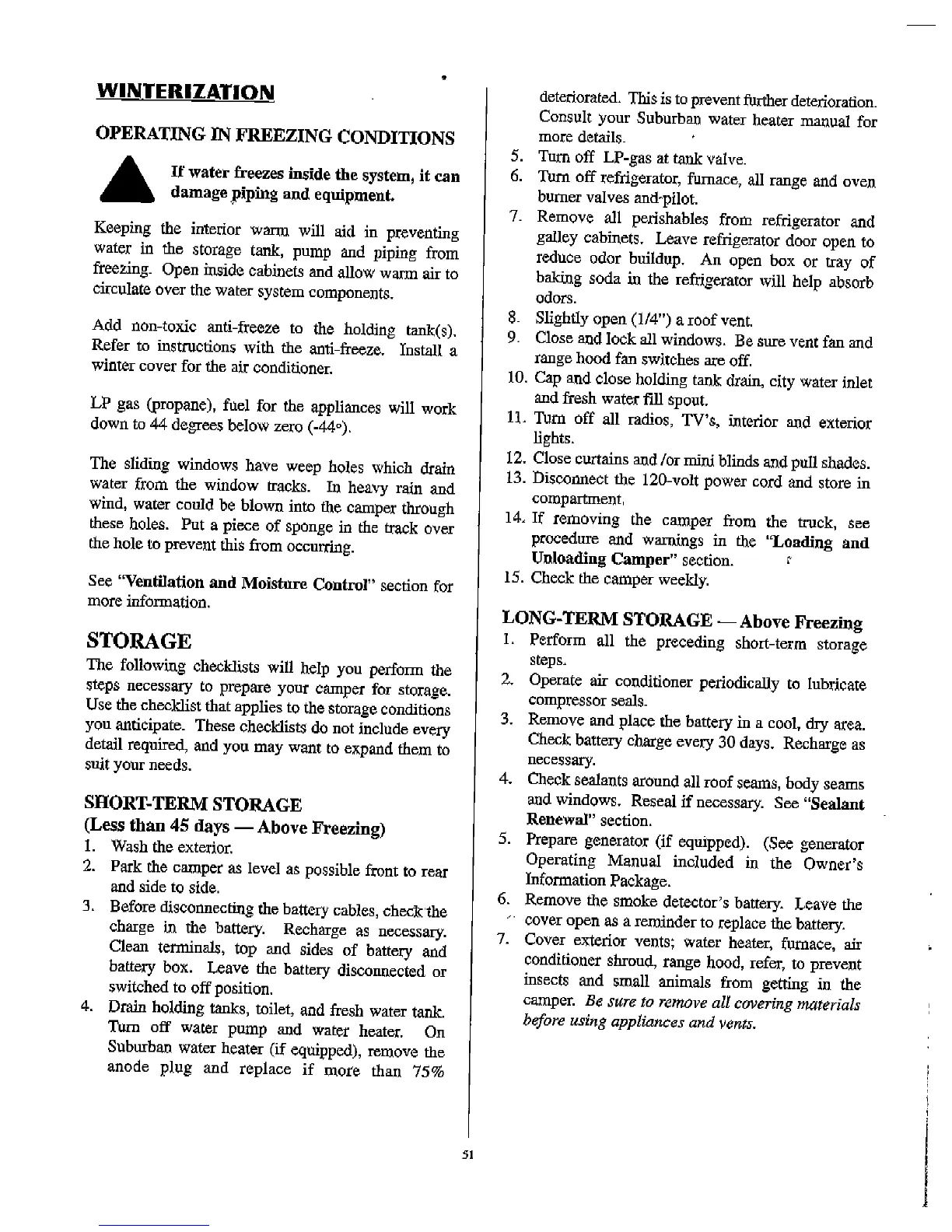 Lance 2002 - Winterization; Operating in Freezing Conditions; Storage