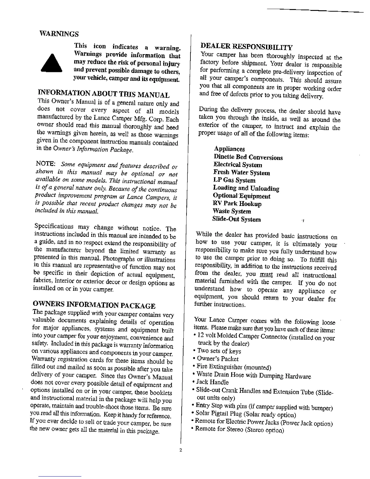 Lance 2002 - CAMPER AND TRUCK; ELECTRICAL CONNECTION TO TRUCK