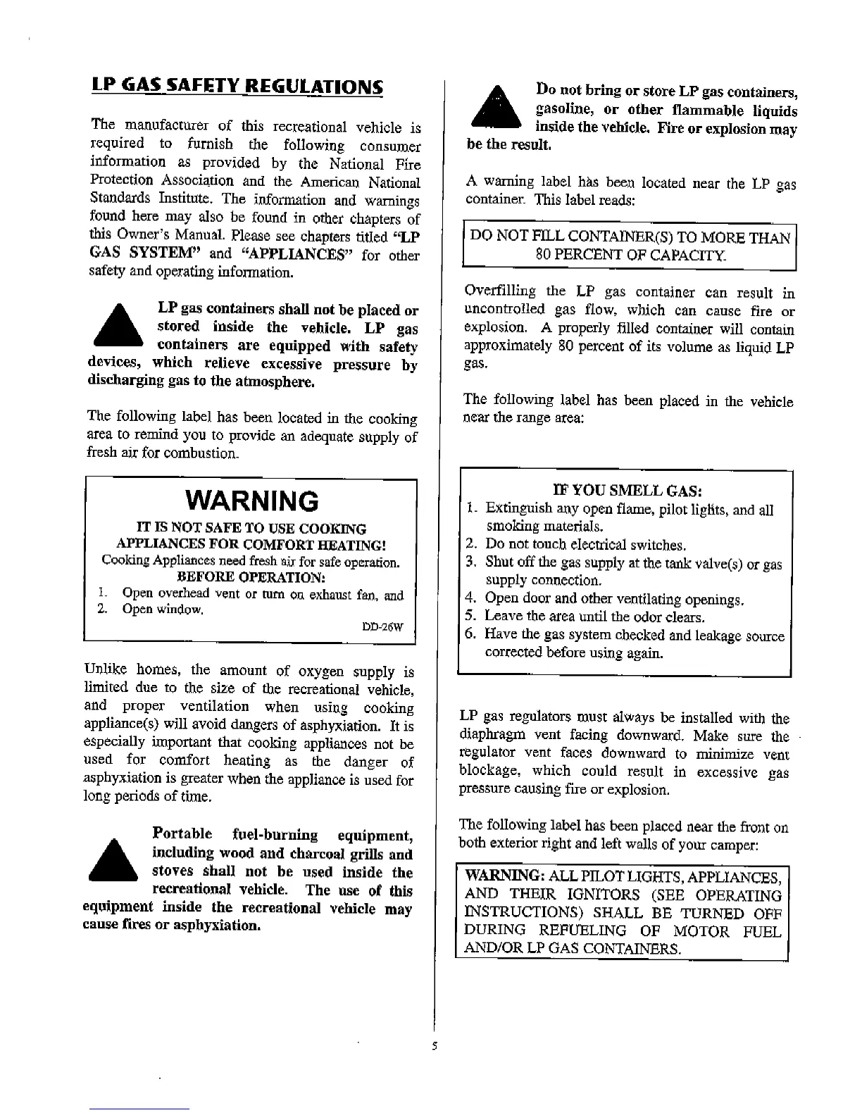 Lance 2002 - LP Gas Safety Regulations; If You Smell Gas
