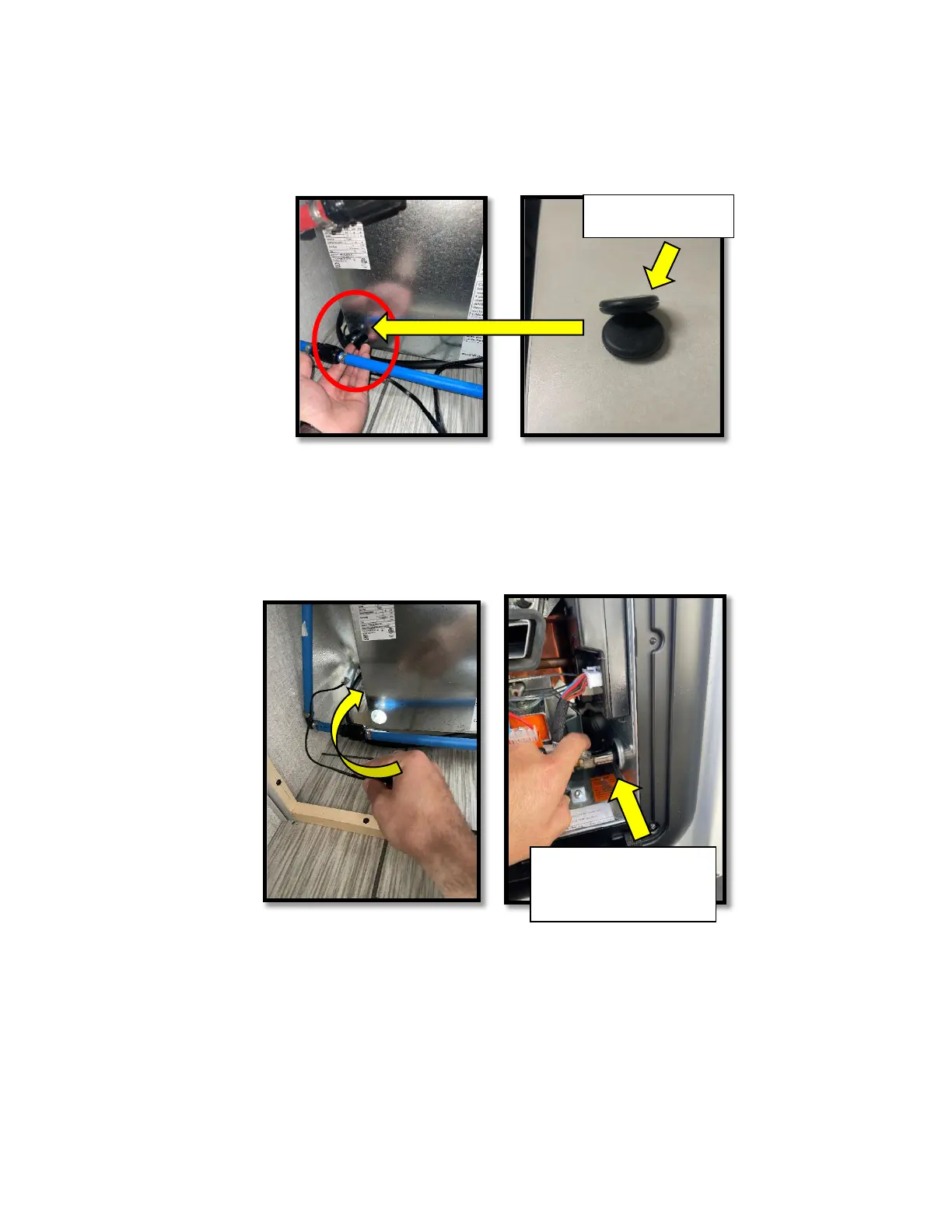 8) Install the rubber cap to cover the cold water inlet on the back of the water heater