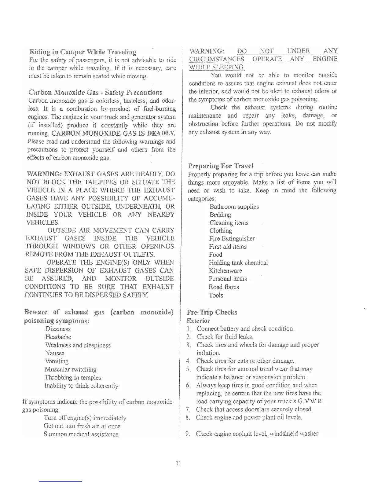 Lance Legend - Pre-Trip Checks; Fire and Safety Equipment