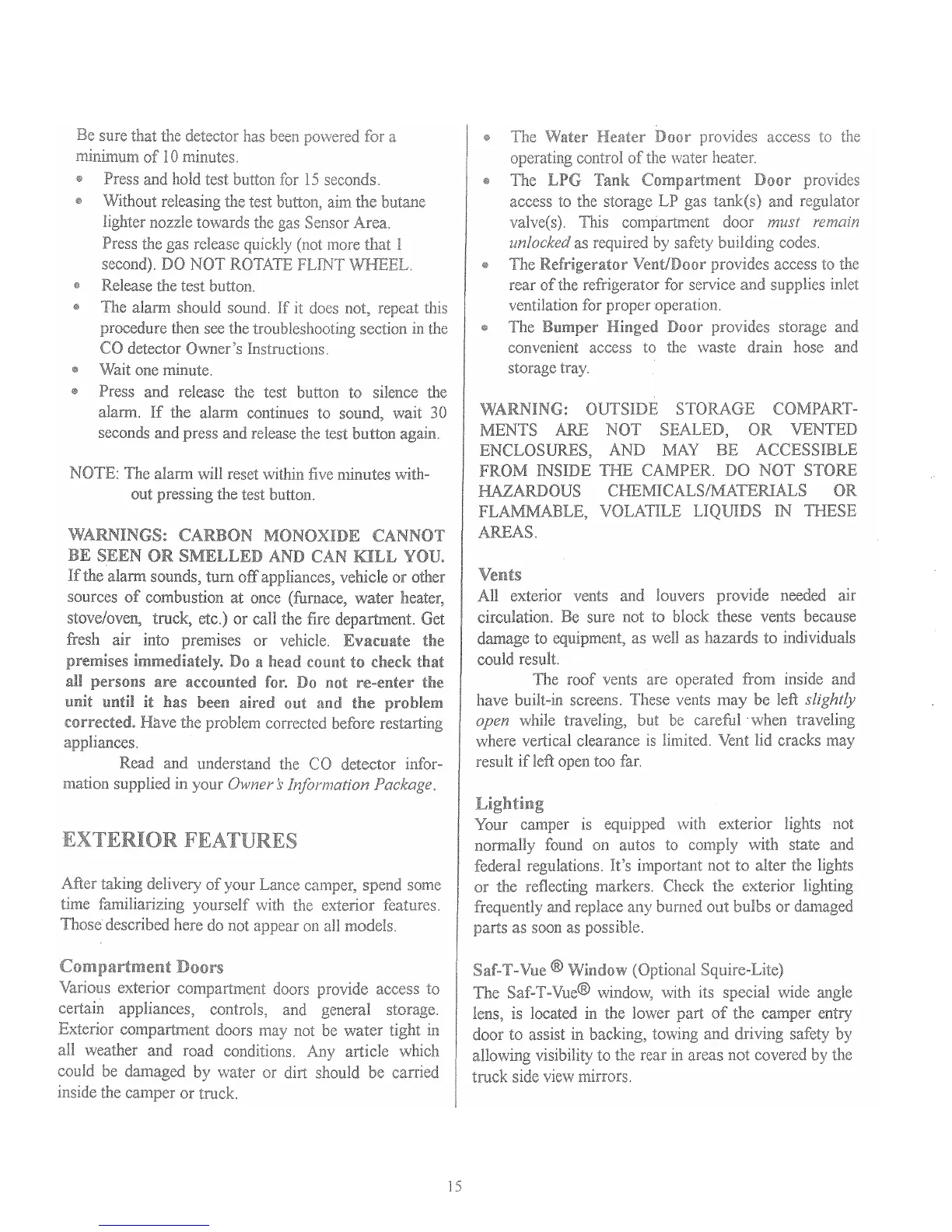 Lance Legend - Exterior Compartments, Vents, and Lighting; Exterior Visibility and Access Features