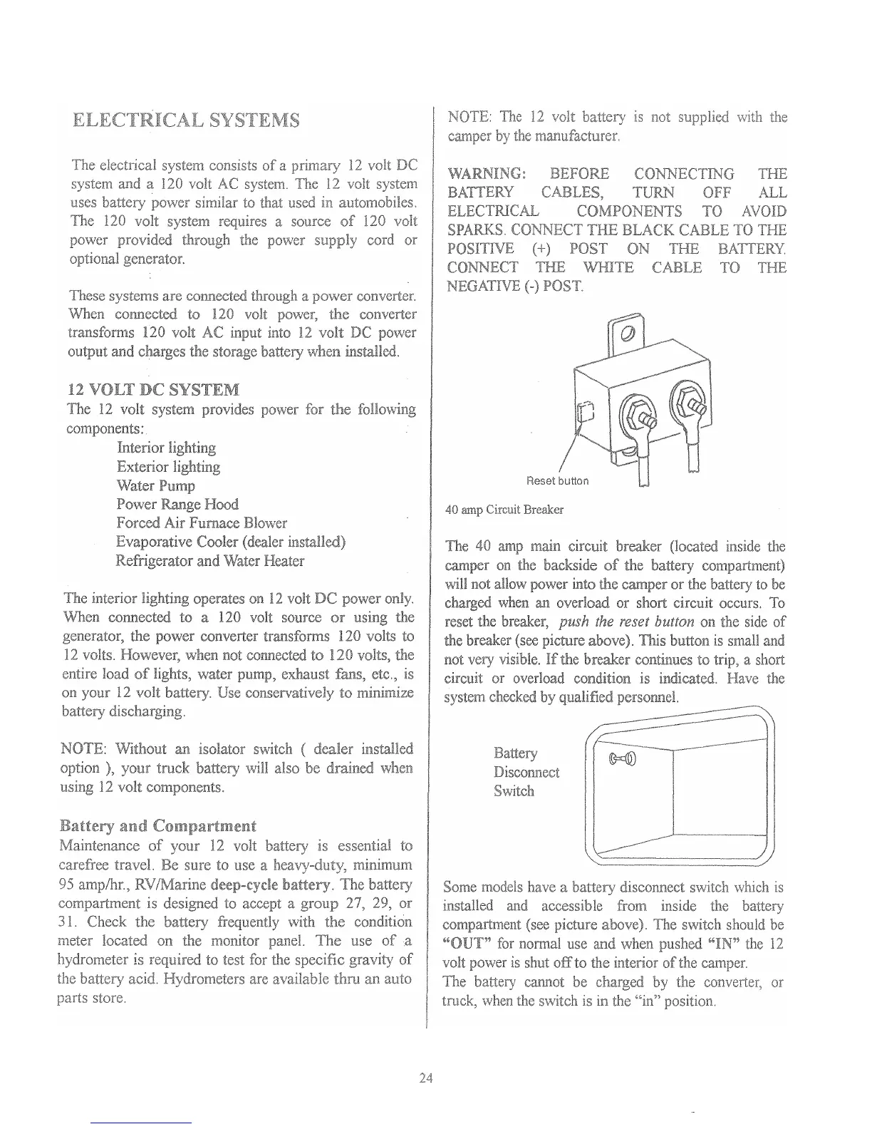 Lance Legend - Electrical Systems; 12 Volt DC System; Battery and Compartment