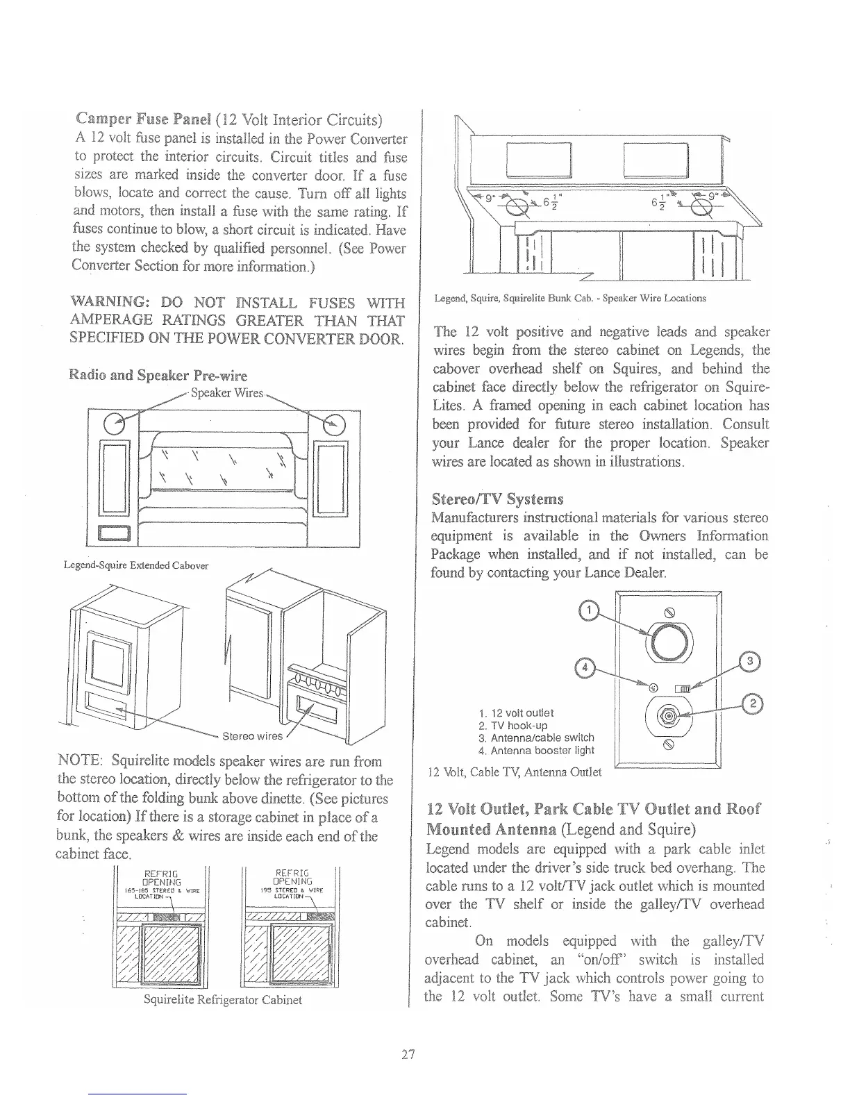 Lance Legend - Camper Fuse Panel; Stereo;Pv Systems