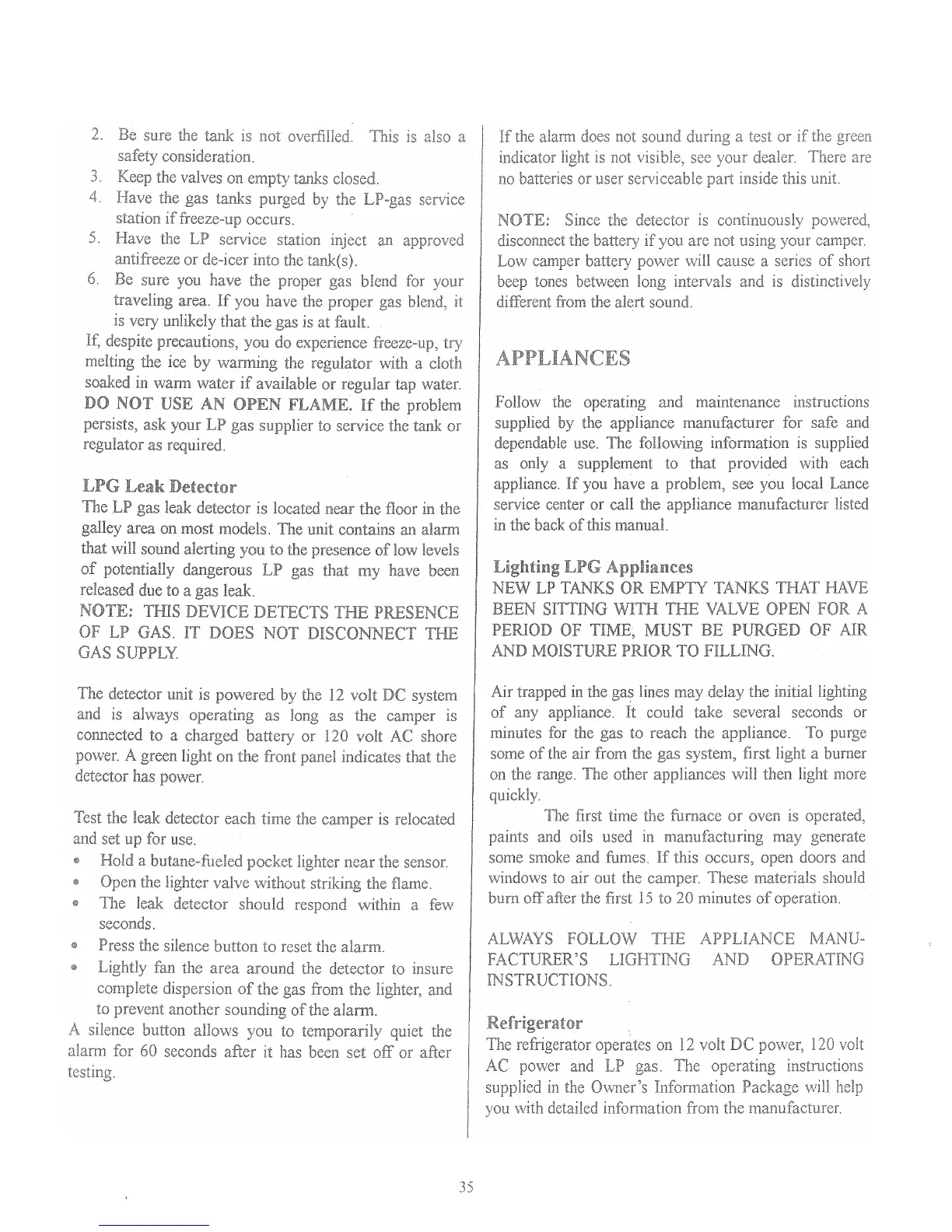 Lance Legend - Refrigerator and Range-Oven Operation; Appliance Safety and Special Features