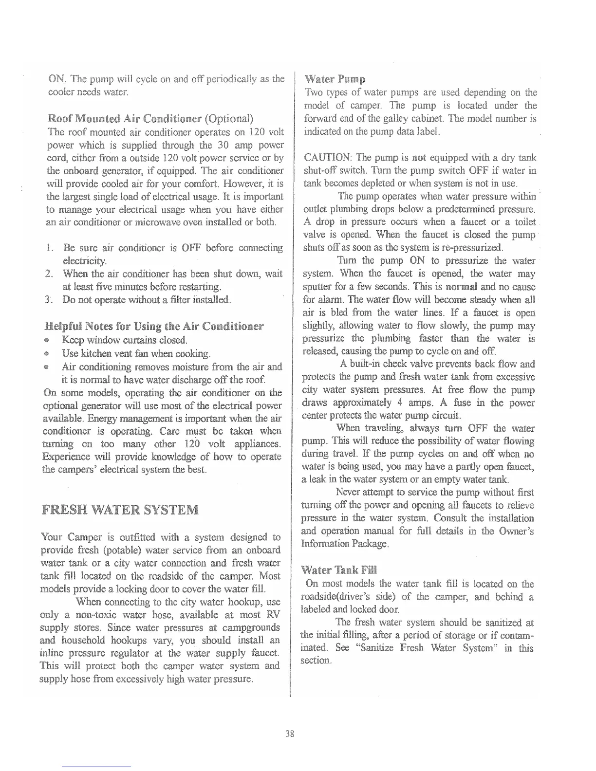 Lance Legend - Water Pump and System Operation; Waste System Management