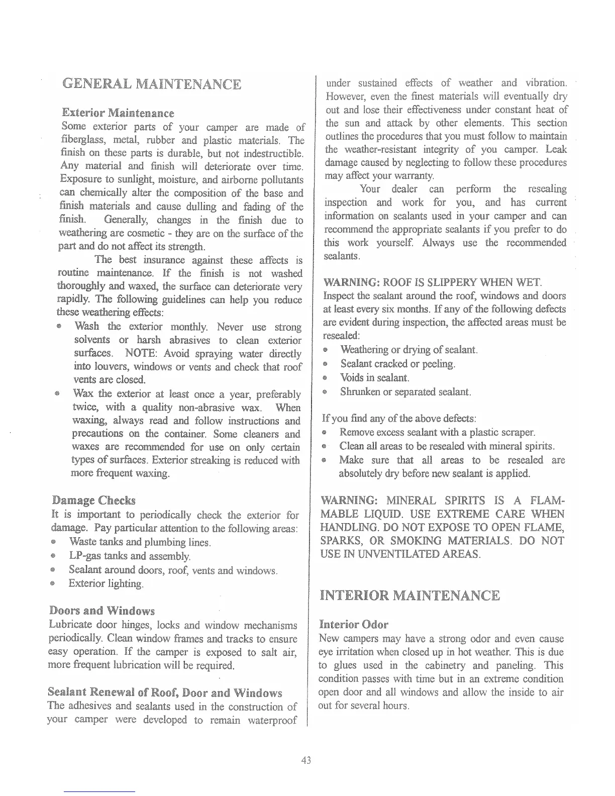 Lance Legend - Exterior Maintenance and Sealant Renewal; Interior Maintenance and Cleaning