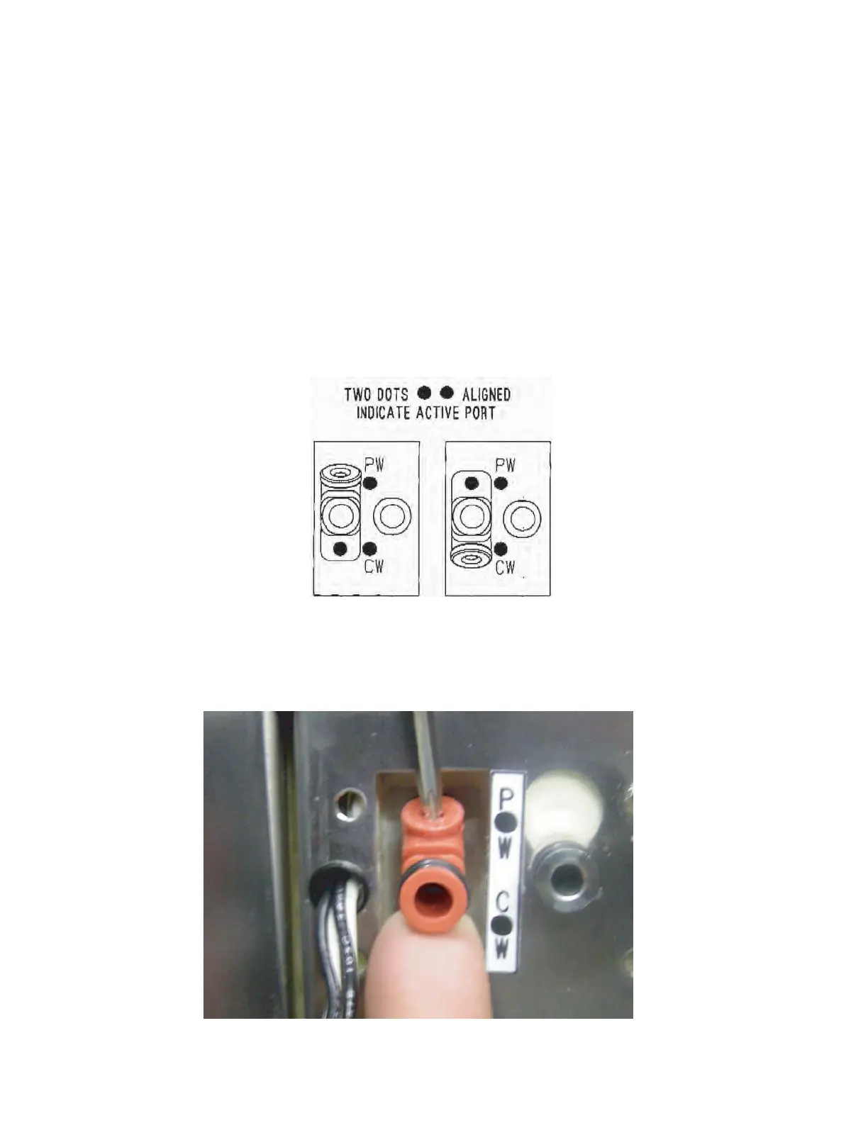 The alignment of the dot on the converter block signifies the active port (plain water or