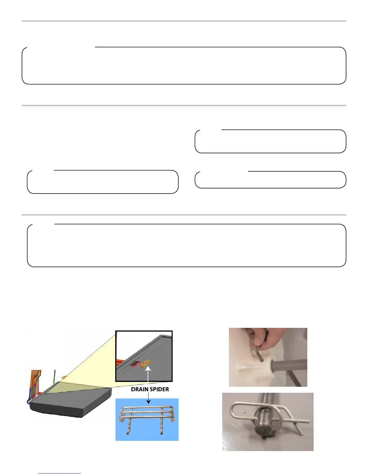 Inspect the lower bin area and reach under the shroud to ensure the drain spider is secure in the coldplate cutout. If the