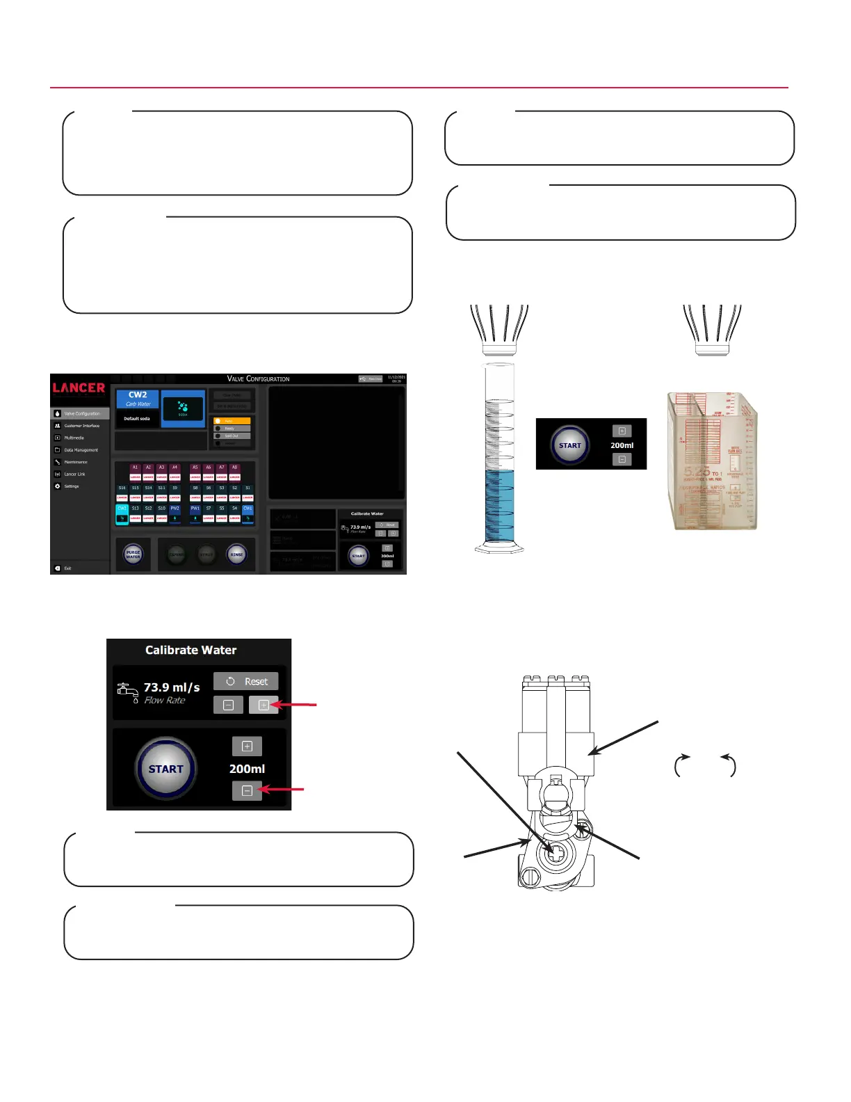 3. Adjust the water flow rate to 73.9 ml/s using the +/- buttons