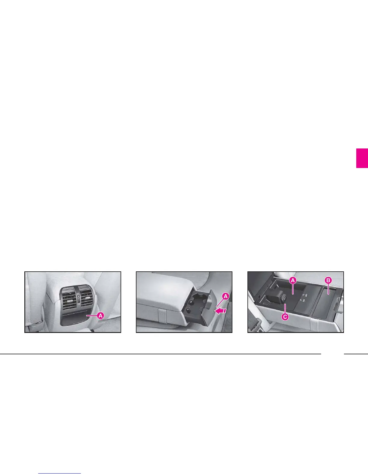 card holder B and a power socket C.