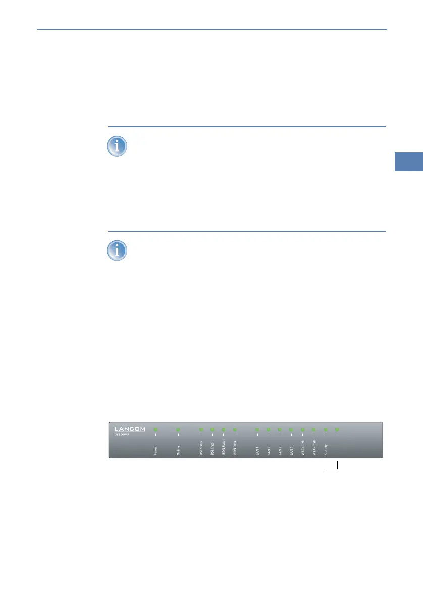 The various LANCOM Wireless DSL models have different numbers of indica-