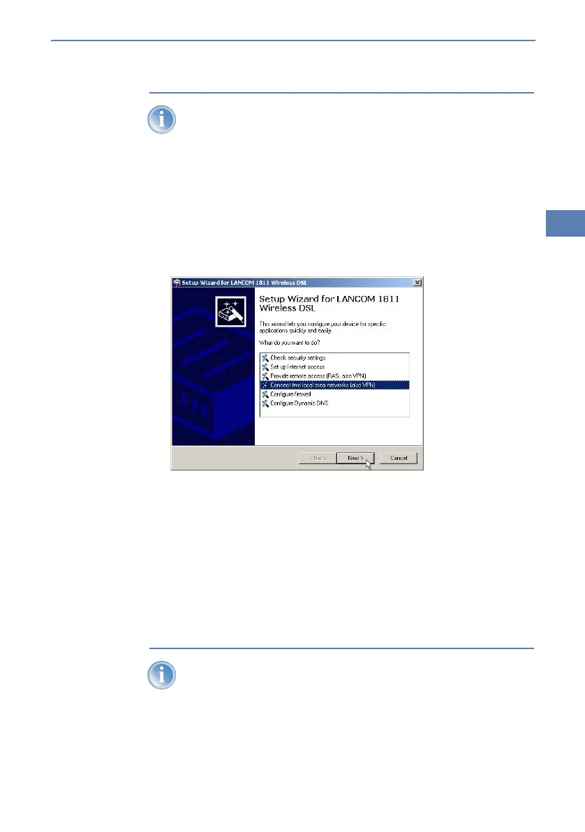 햲 Launch the 'Connect two local area networks' wizard. Follow the wizard's