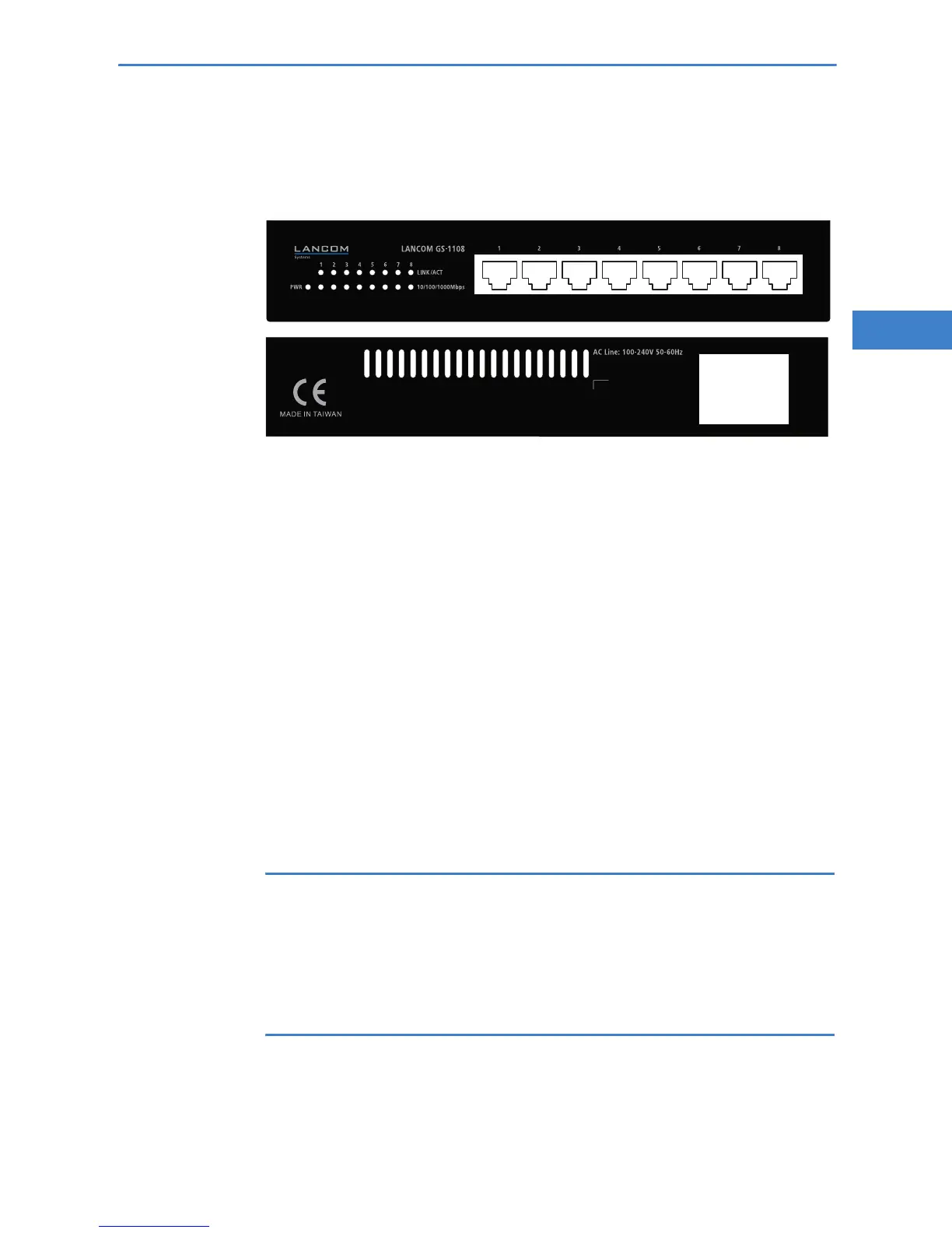 to an available LAN port 쐃 on the LANCOM GS-1108. The LAN ports are