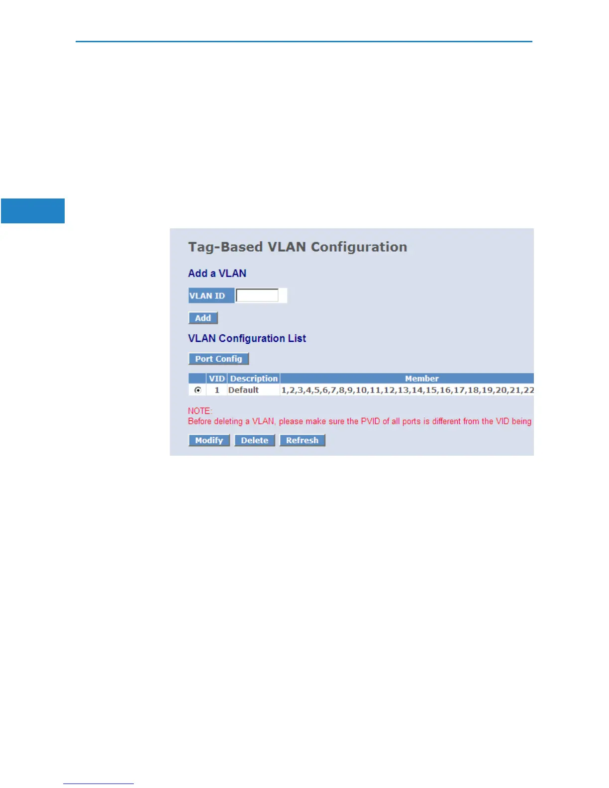 Click on Delete to remove the selected VLAN.